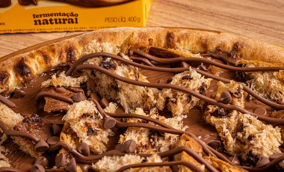 Pizza ( BROTO) de chocotone com chocolate ao leite